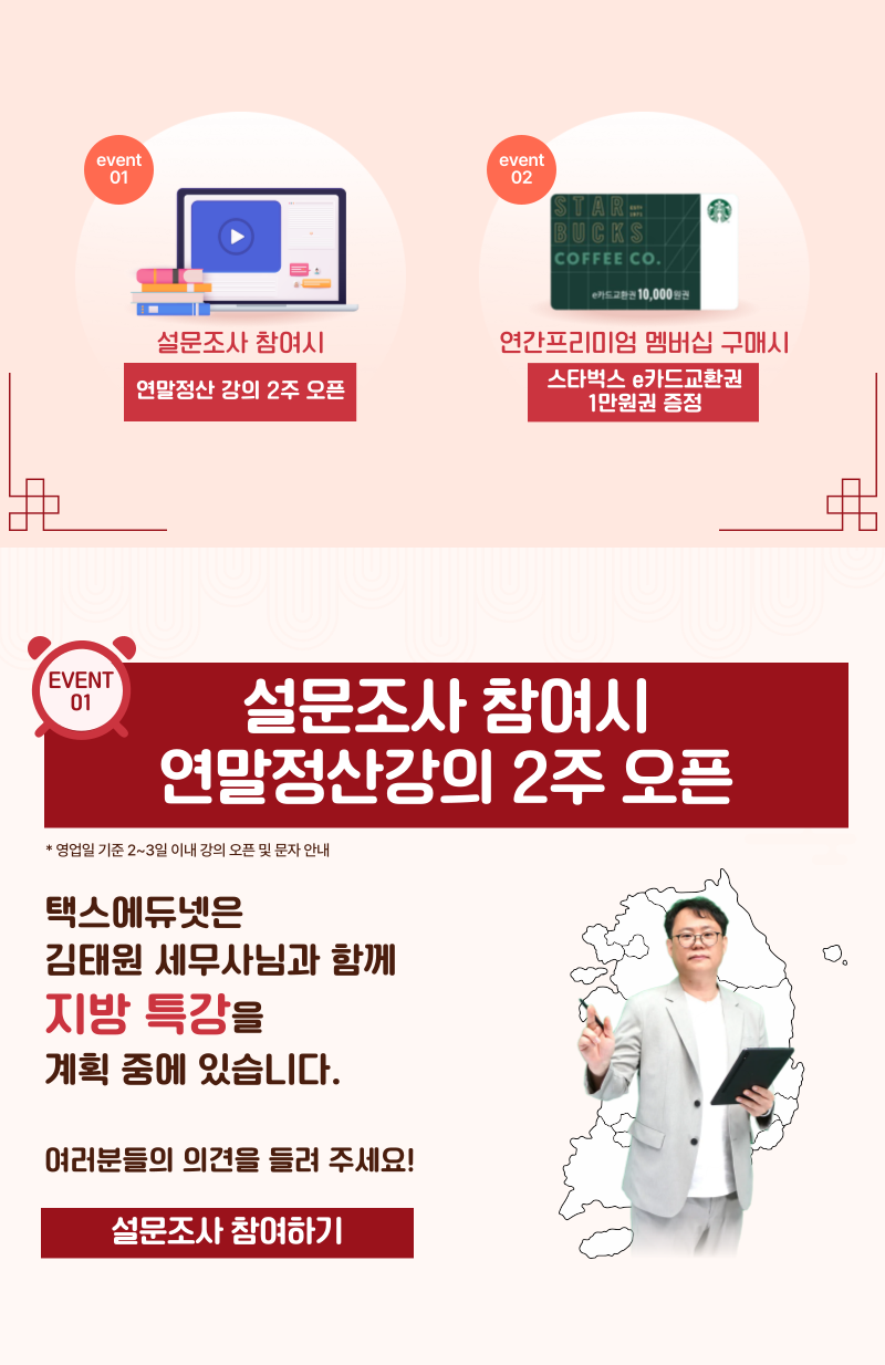 [이벤트] 5월 종합소득세 신고를 위한 통합고용세액공제 교재 이벤트(4/15~5/19)